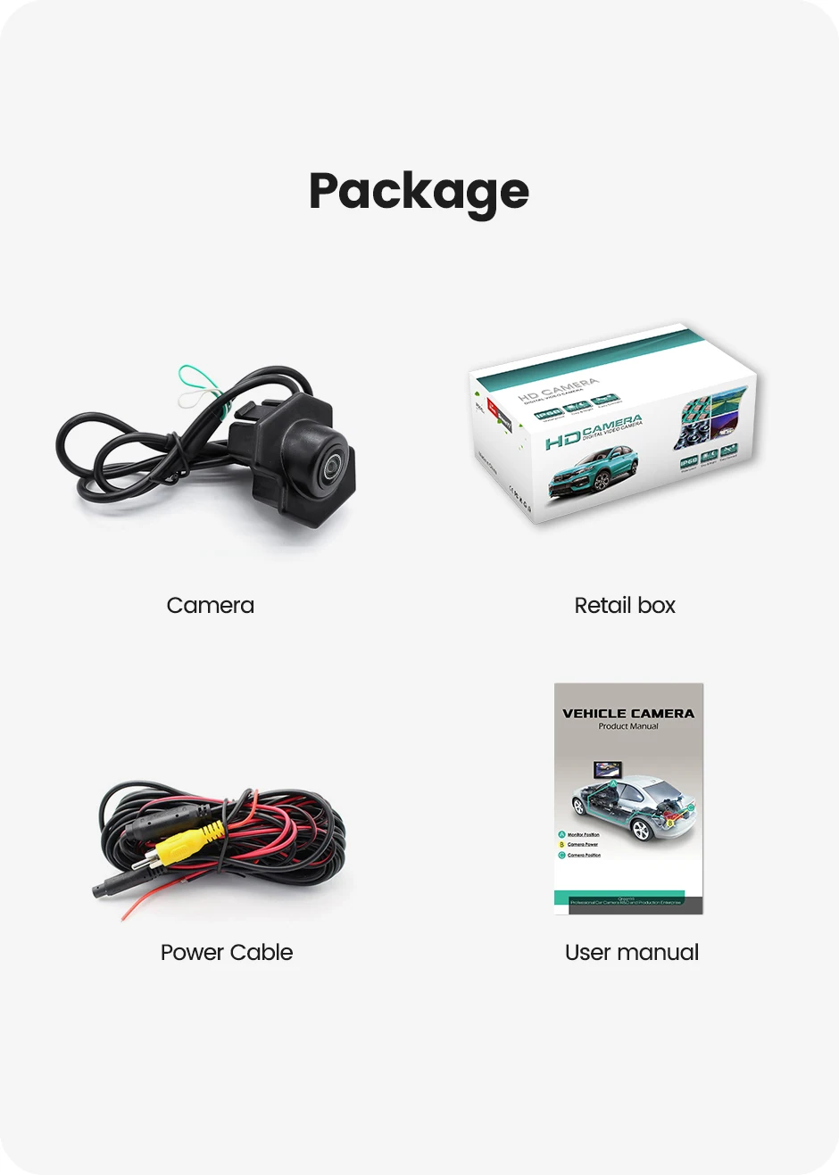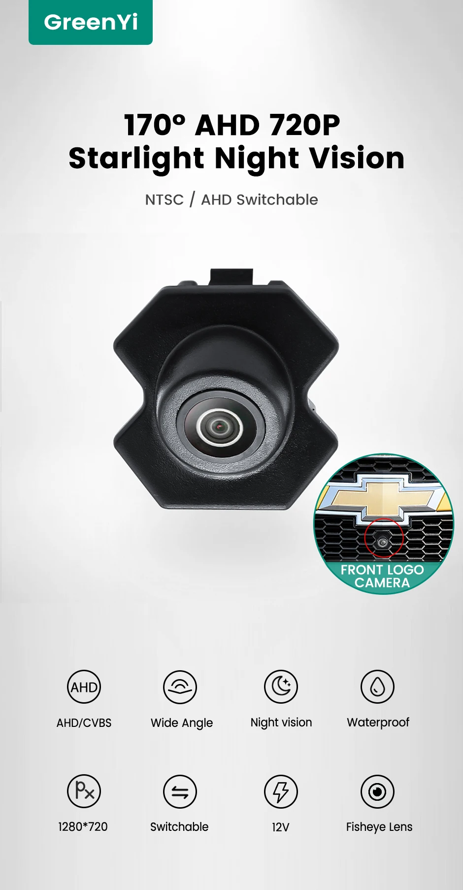 • Подходит для следующих моделей: ChevroletПерекрестие• Место установки: Логотип Chevrolet• Угол обзора объектива: 170 °• Разрешение: 1280*720• Телевизионные линии: 1000• Мощность: 12 В постоянного тока• Водонепроницаемость: IP68• Видеосистема: переключаемый NTSC / AHD• Подходит для парковки ВКЛ./ВЫКЛ.: Поддержка• Советы:1. Если ваш логотип закрыт, он не подходит для вашего автомобиля. Или вам нужно сверлить отверстие.2. AHD сигнал поддерживает только AHD монитор.3. Если ваш монитор не поддерживает AHD, вы можете отрезать белую линию, и камера переключается на общий сигнал CVBS ..