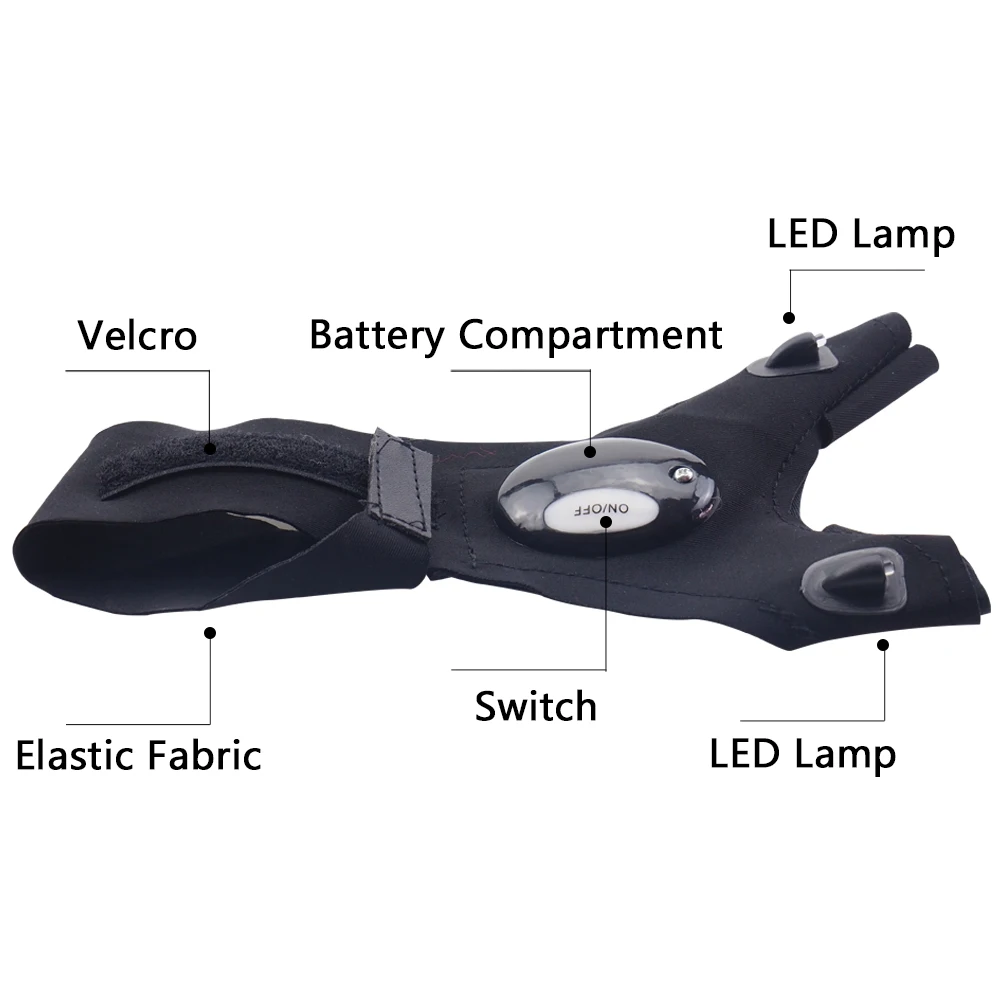 Перчатка без пальцев, светодиодный фонарик, инструмент для рыбалки,...