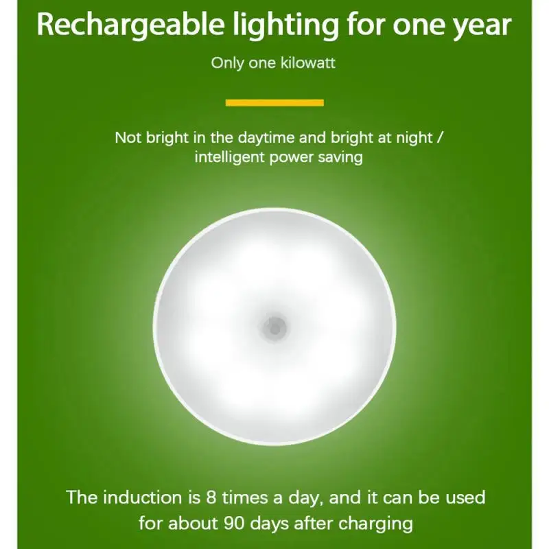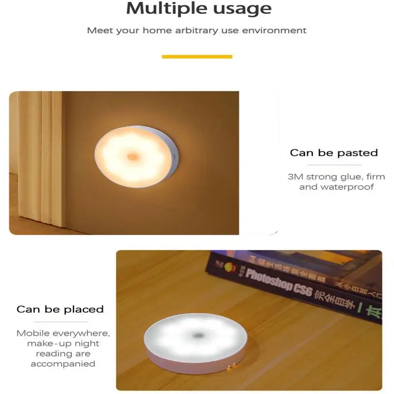Энергосберегающая лампа с датчиком движения, Индукционная лампа для тела, светодиодный ночсветильник с USB-зарядкой для декора комнаты, коридора, лестницы, шкафа