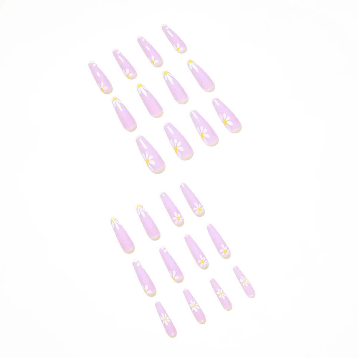 Акриловые накладные ногти, маленькие маргаритки, патчи для ногтей, клей, Длинные накладные ногти балерины, полное покрытие, гроб, накладные ногти, накладные ногти