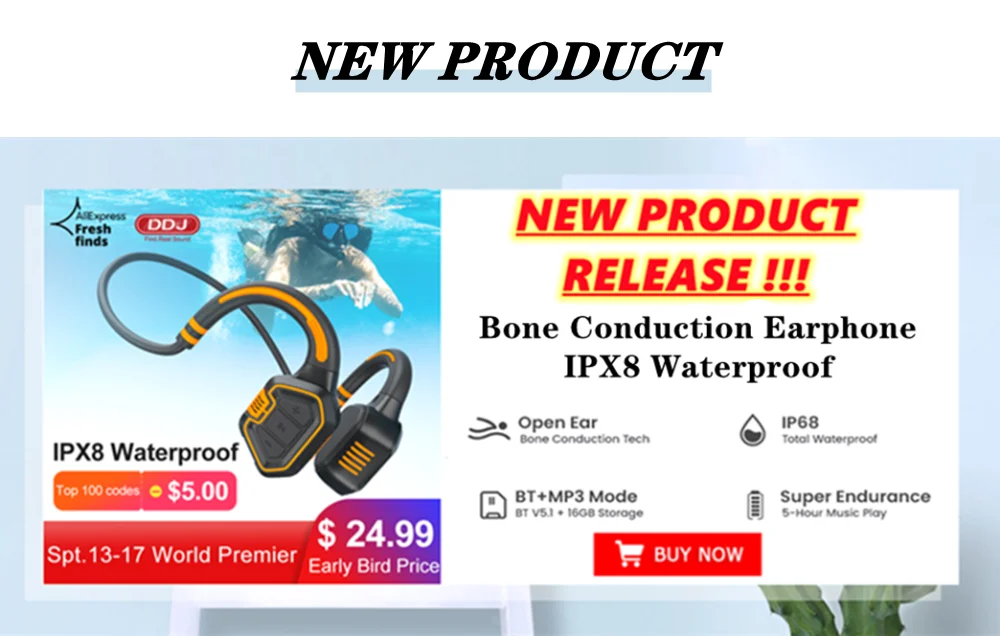 Водонепроницаемые беспроводные Bluetooth-наушники DDJ K7 IPX8 для плавания, mp3-плеер, спортивные наушники с памятью 8 ГБ, для подводного плавания, для Android, Ios