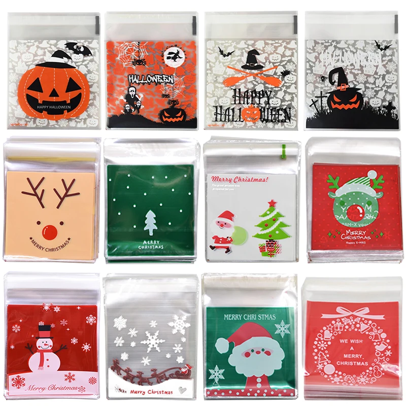 50100 шт 10x10 см конфеты Хэллоуин мешки Тыква Призрак для печенья, закусок упаковки еды Подарочная сумка Navidad рождественские украшения Поставки