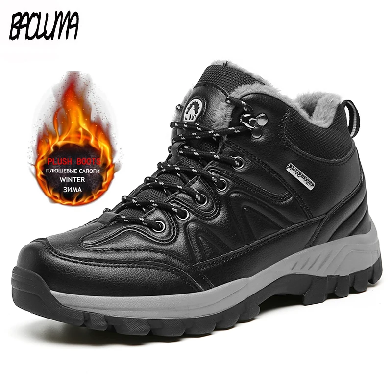 Брендовые мужские ботинки, мужские зимние ботинки, мужские теплые плюшевые зимние ботинки, мужские водонепроницаемые ботильоны, кожаные уличные Прогулочные кроссовки