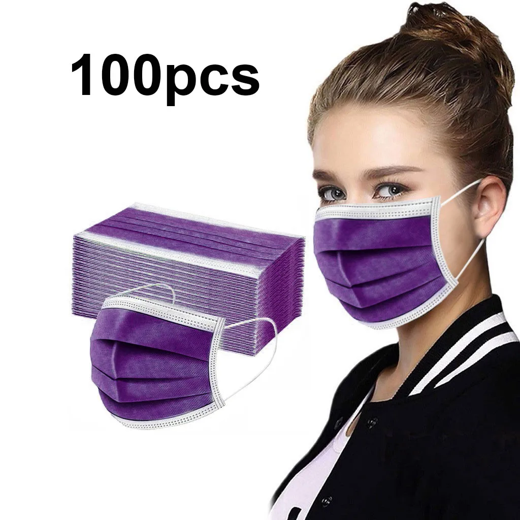 10-100 шт. одноразовые нетканые 3-слойный фильтр Маска Цвет: фиолет...