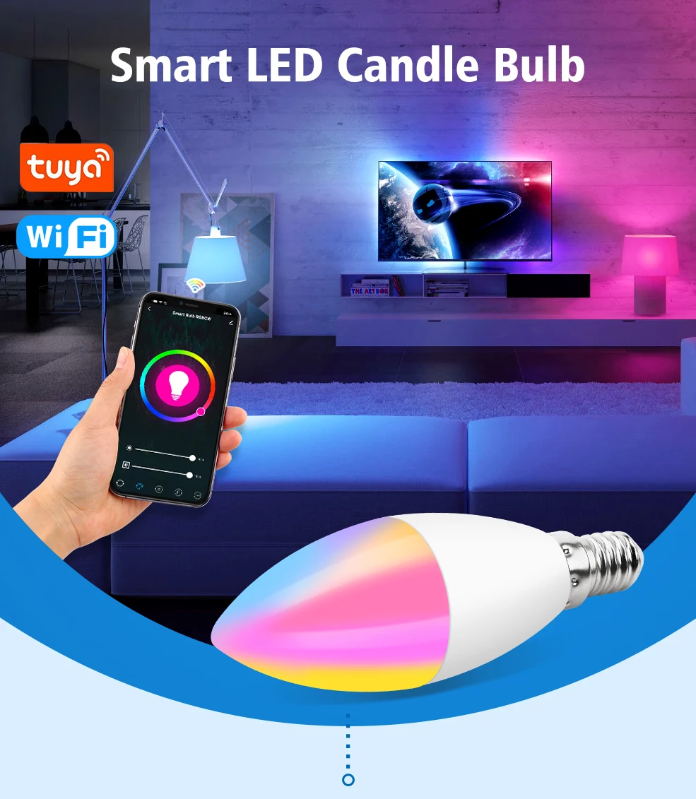 Умная лампа-свеча Aubess с Wi-Fi, светодиодная лампа E14, работает ...