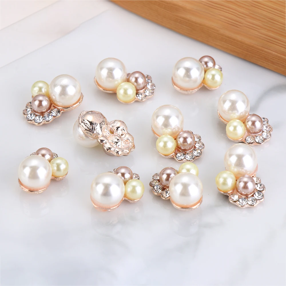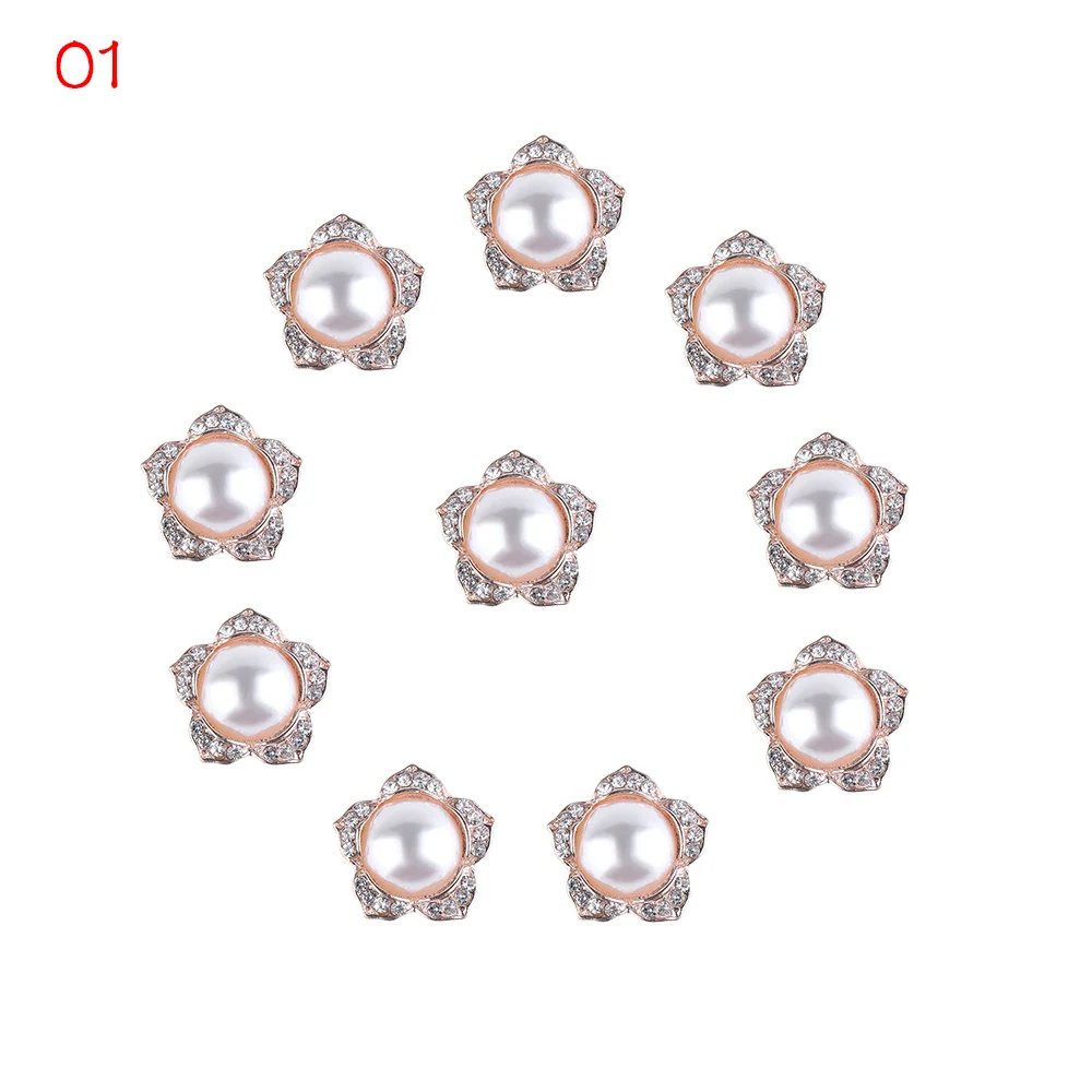 10 шт.компл. Цветочные пуговицы, жемчужные пуговицы, Свадебный декор, сплав, стразы с кристаллами, аксессуары для шитья одежды, платья