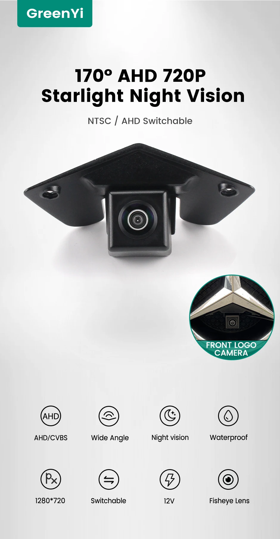 GreenYi 170 AHD 720P Автомобильная камера переднего вида для Benz Mercedes Vito Viano A B C E G GL SLK GLK SL R CCD Logo Mark HD камера
