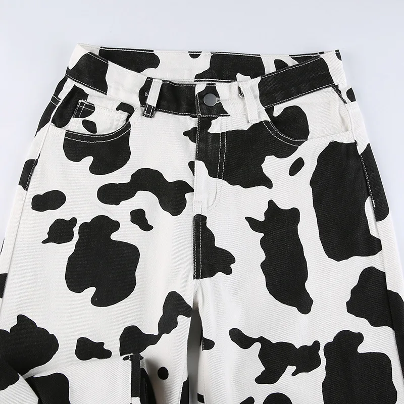 Женские прямые джинсы с коровьим принтом y2k, джинсы большого разме...