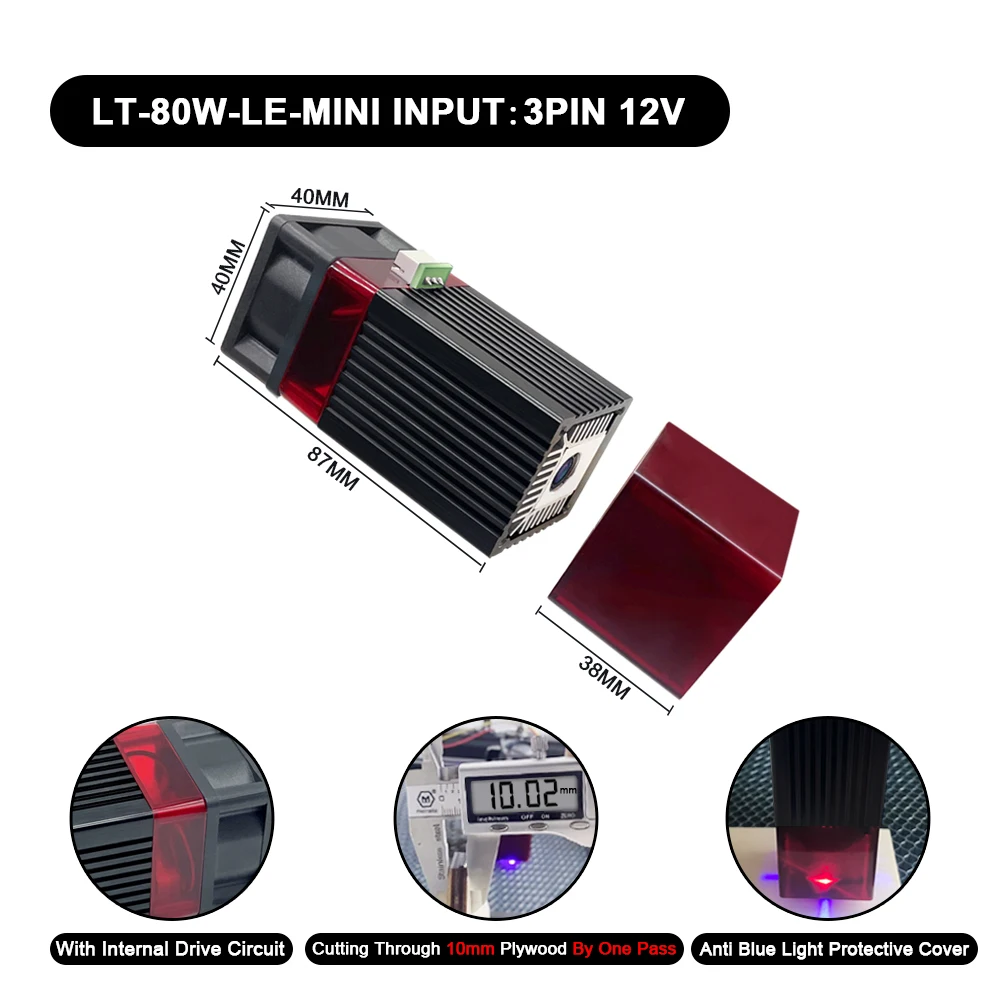 Синий лазерный модуль --- профессиональная лазерная головка с высокой скоростью и высокой стабильностью. Яркий синий светильник, легко найти при резке.