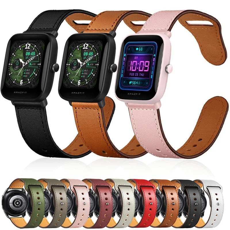 Ремешок кожаный для Amazfit GTS22eGTS2 MiniGTR 42 мм47 ммGTR22estratos 3, Amazfit bippace, 20 22 мм