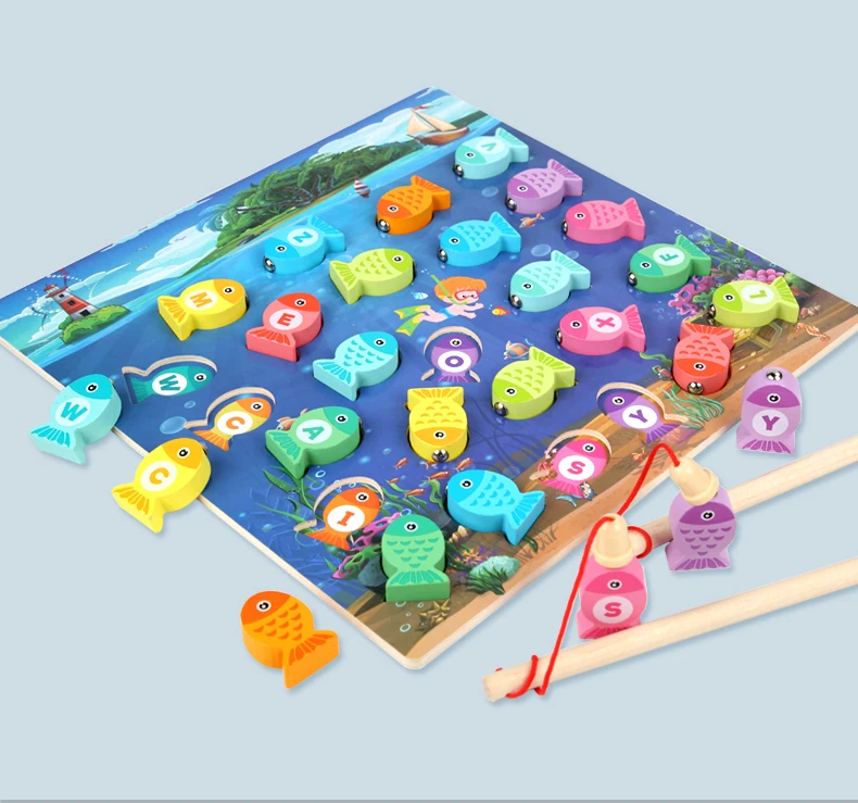 Дошкольные Деревянные игрушки Монтессори, магнитная рыболовная игра, Детский пазл, учебные пособия, Игрушки для раннего развития для детей, подарки для девочек