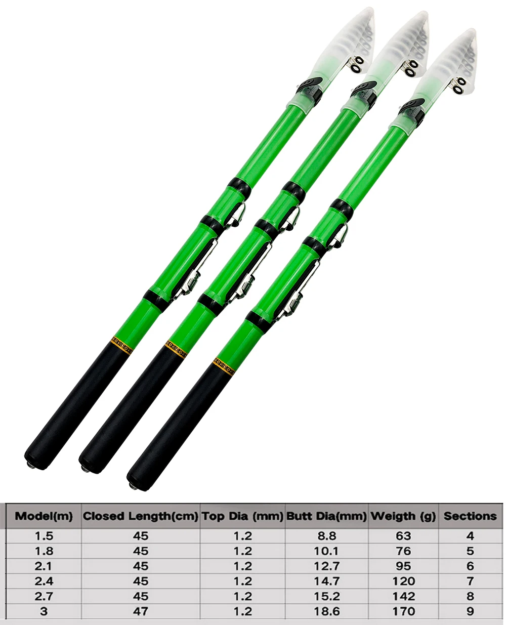 Спиннинг телескопический из углеродного волокна, 1,82,12,42,73,0 м