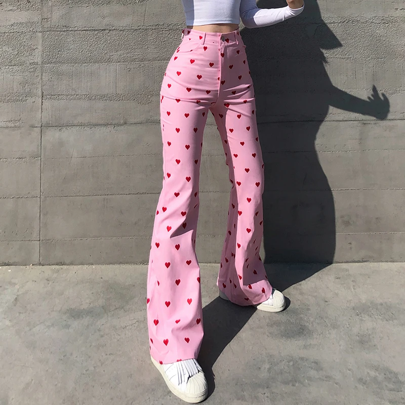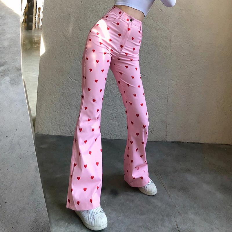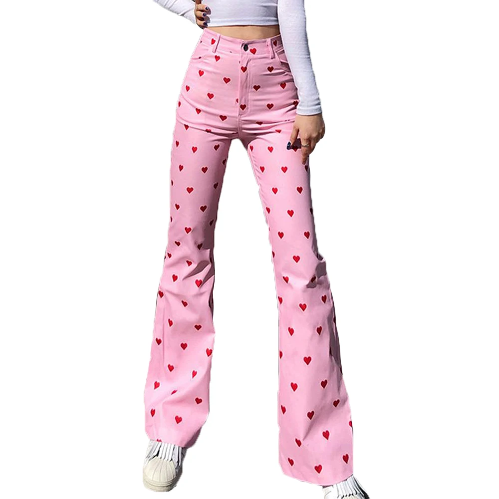Женские розовые расклешенные джинсы, милые облегающие брюки Y2K с завышенной талией, Повседневная Уличная одежда, джинсовые брюки, штаны в стиле хиппер