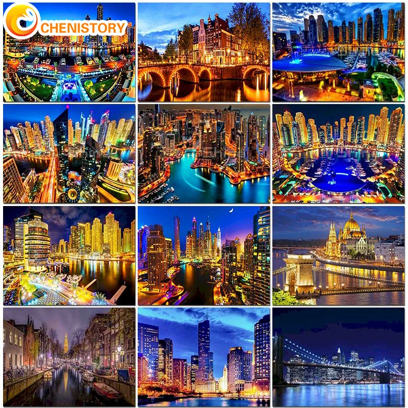 Городской пейзаж Краски ing по номерам Нью-Йорк на холсте DIY Набор...