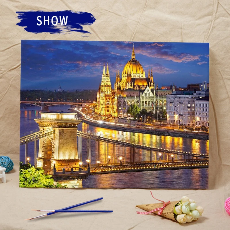 Пейзаж RUOPOTY для взрослых, мост, река и дом, набор для рисования ...