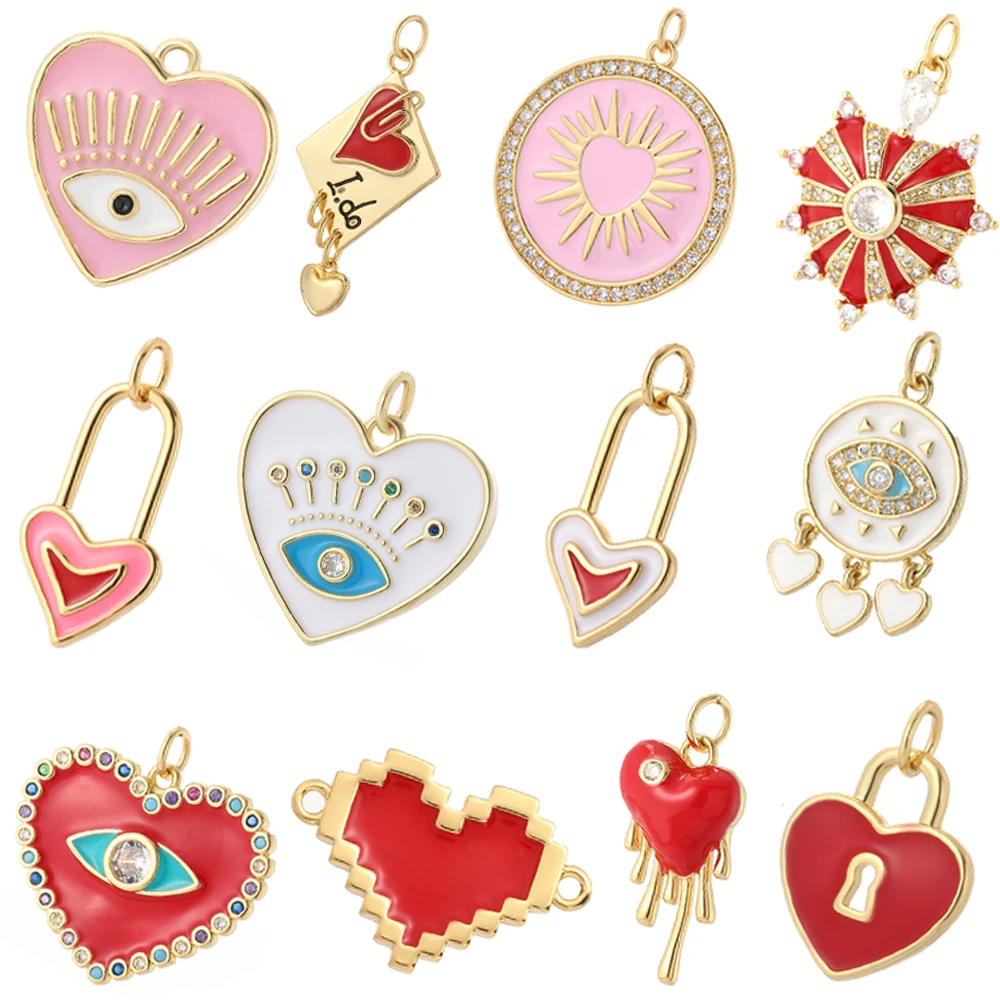 Подвески для изготовления ювелирных изделий, с красным сердцем, с г...