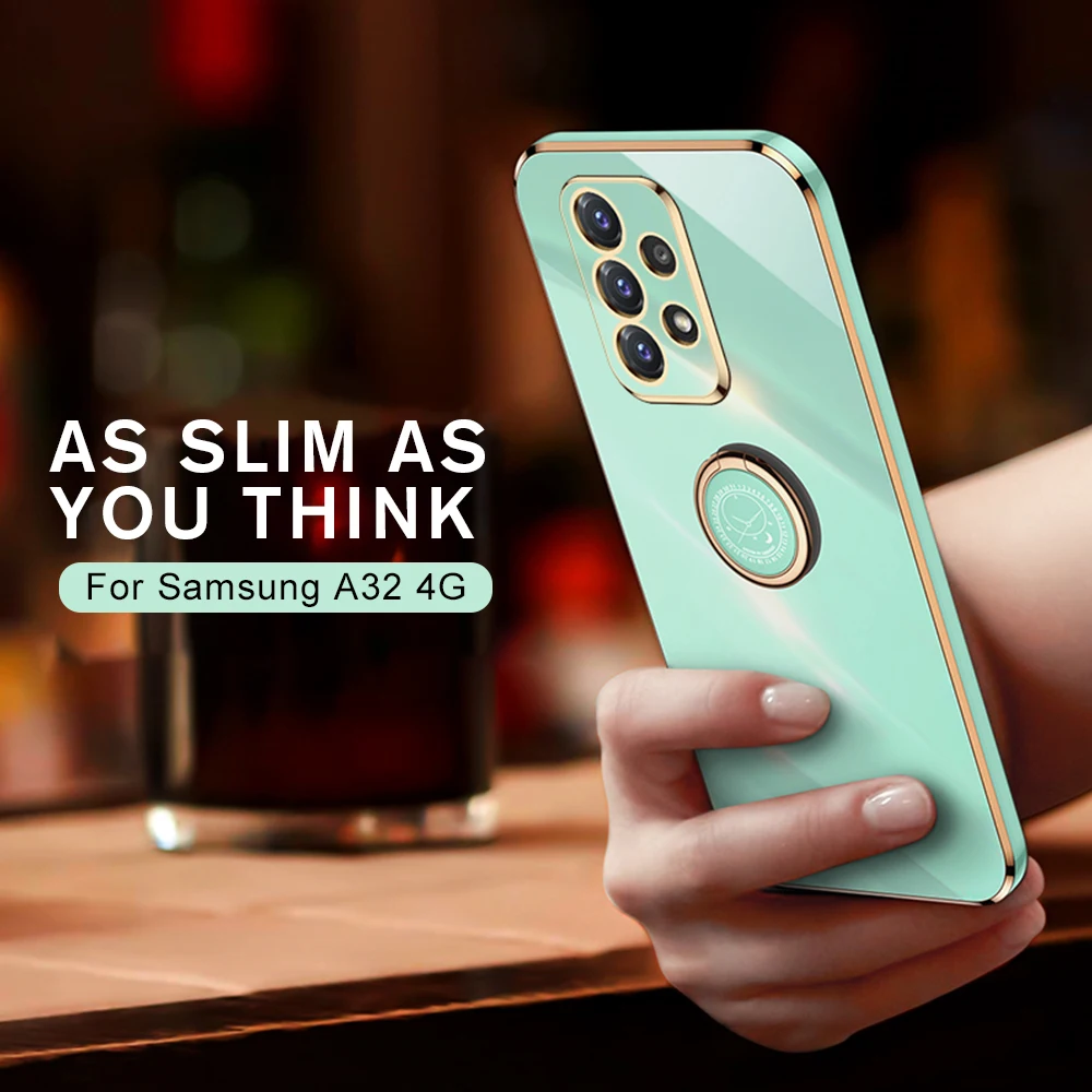 Чехол для Samsung Galaxy A32 4G, роскошный чехол-подставка с гальваническим покрытием и прямыми краями, мягкий чехол из ТПУ для телефона Sansung Samsong A 32