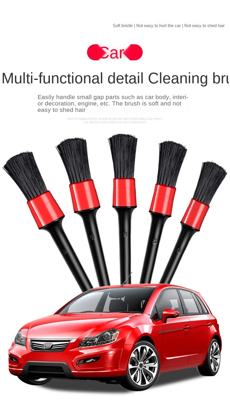 Щетка для деталей интерьера автомобиля, 5 шт., щетка с щетиной кабана для чистки автомобиля, инструменты для автодеталей, щетка для чистки приборной панели