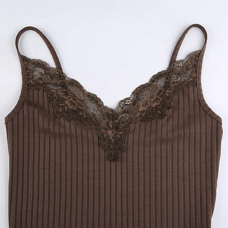 Женская кружевная майка Goth в стиле пэчворк, сексуальный коричневы...