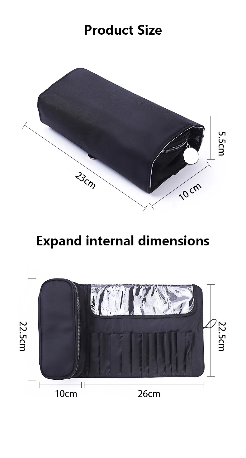Держите его аккуратным и чистым: все ваши вещи хорошо и организованно, поэтому вам не нужно постоянно искать все.Компактный размер: легко складывается в пляжную сумку, когда вы находитесь в отпуске или в рабочей сумке.Большая емкость: есть много карманов и мест для хранения всех видов кистей для макияжа и нескольких небольших косметических принадлежностей.Идеальные подарки: идеальные рождественские подарки, подарки на день рождения, юбилейные подарки для вашей жены, подруги.Застежка-молния: сумка сохранит ваши аксессуары для туалетных принадлежностей в безопасности, ее легко получить к ним, быстрее и удобнее.Описание:Основной материал: водонепроницаемая тканьЦвет: черныйТовар Размеры: прибл.(L * W * H)23*10,5*7 смПримечание:1,1 дюймов = 2,45 см/1 см ≈ 0,393 дюймов2. Допускается погрешность в 1-3 см из-за ручного измерения. Пожалуйста, убедитесь, что вы не возражаете, прежде чем сделать ставку.3. Из-за разницы между различными мониторами изображение может не отражать фактический цвет изделия. Спасибо!Упаковочный лист