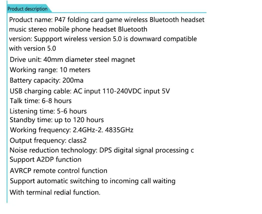Беспроводная Bluetooth-гарнитура P47 с сабвуфером, складная