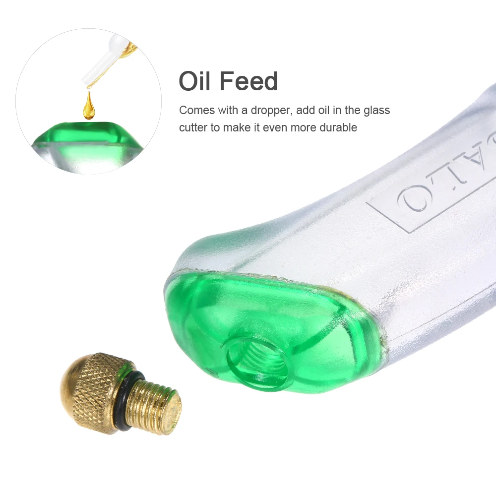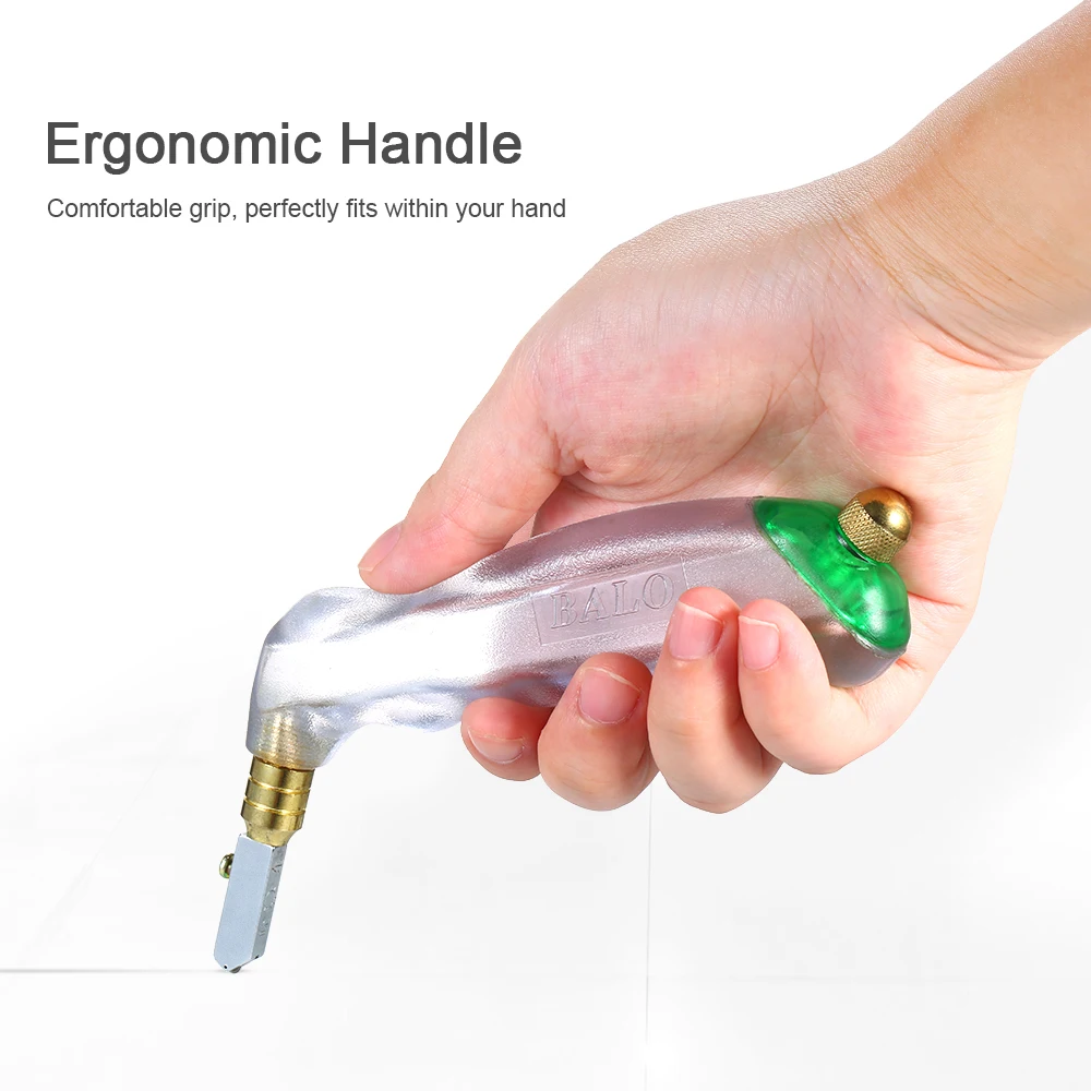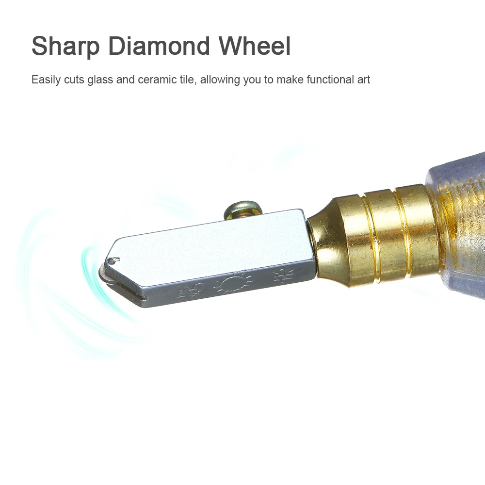 С помощью этого стеклянного резака вы можете легко и удобно резать стеклянную и керамическую плитку. Эрономический дизайн делает его удобным для вас, чтобы держать без утомления. Случайные колеса легко режут ваше стекло.