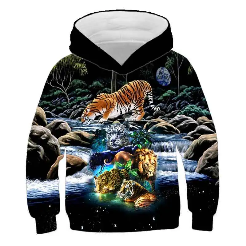 Детская 3D Толстовка с изображением животных, тигра, забавная уличн...
