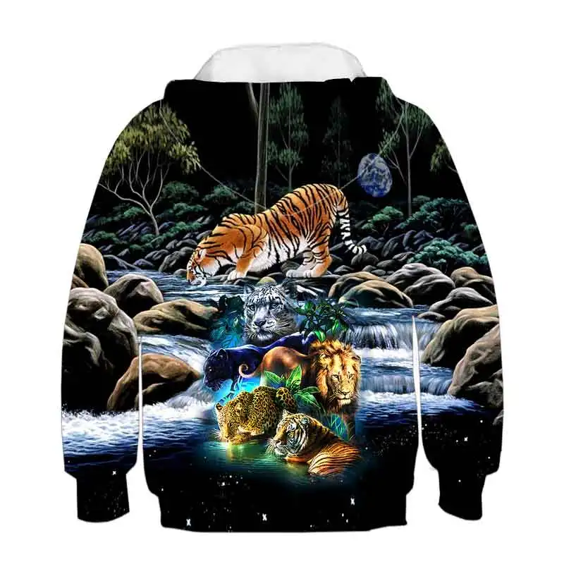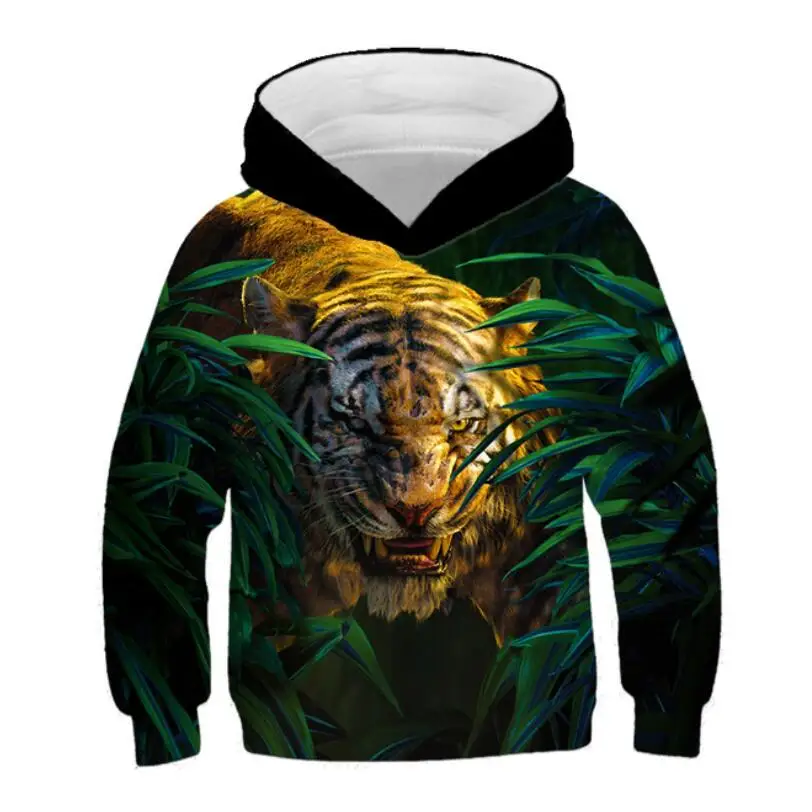 Детская 3D Толстовка с изображением животных, тигра, забавная уличн...