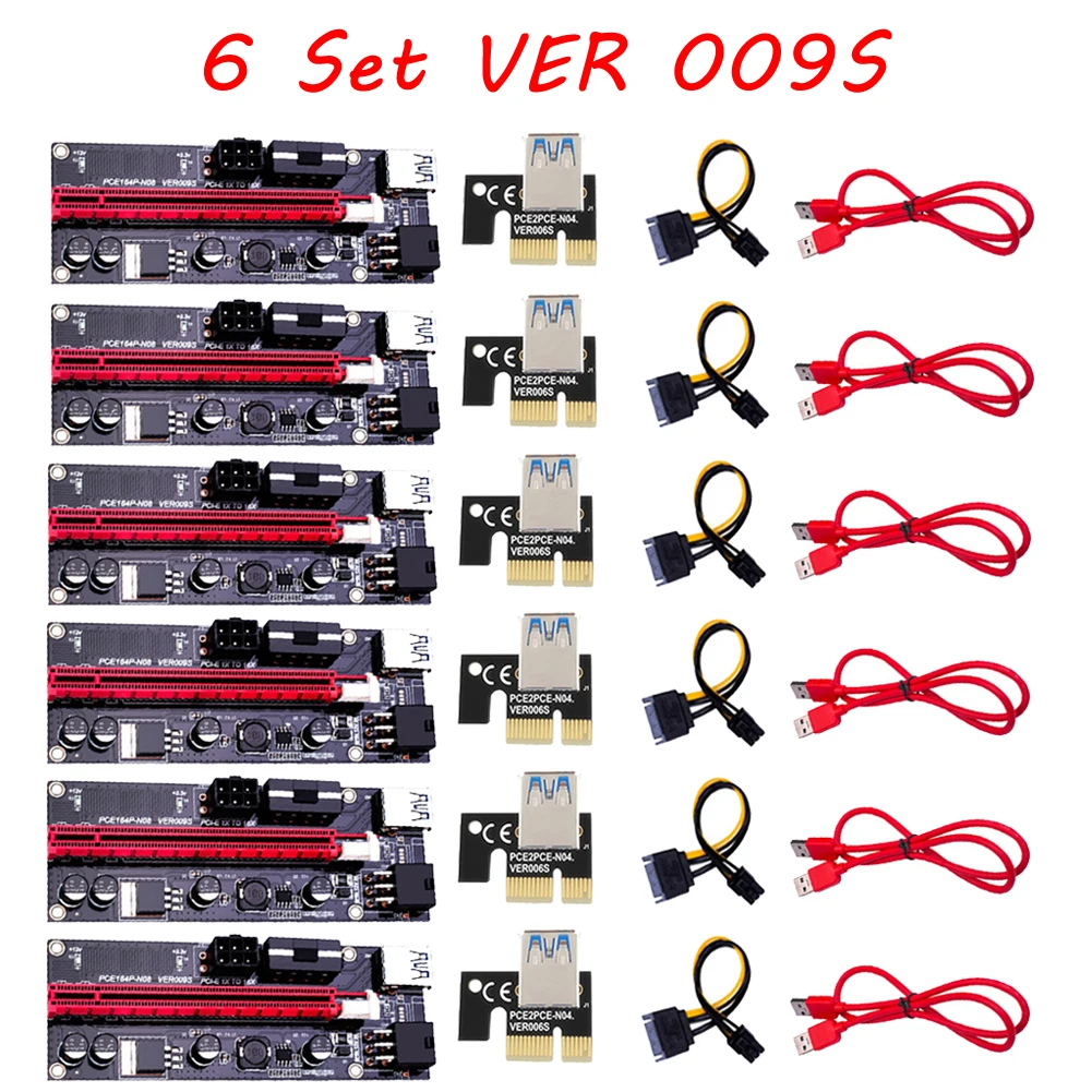 6 шт. PCI-E Pcie Riser 009 Express 1X до 16x расширитель PCI E USB Riser 009S GPU двойная 6-контактная Адаптерная карта SATA 15pin для майнера BTC