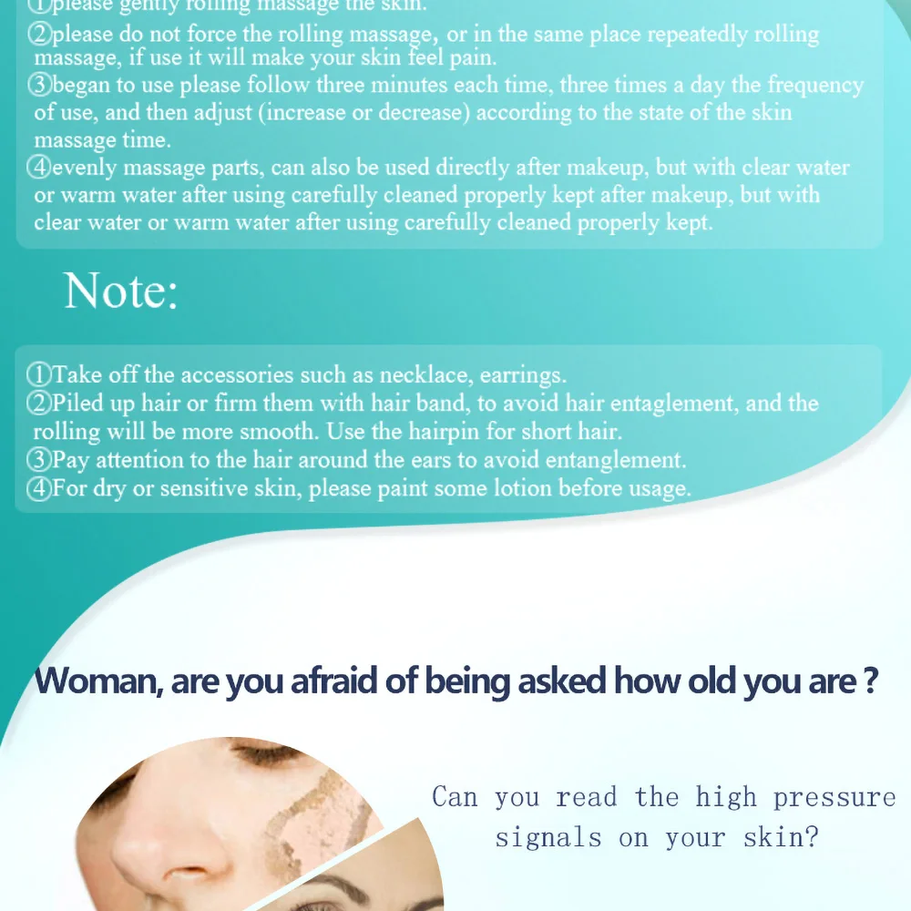 2, пожалуйста, не форсируйте роликовый массаж, или в одном и том же месте многократное роликовое массаж, если использование это заставит вашу кожу чувствовать боль
