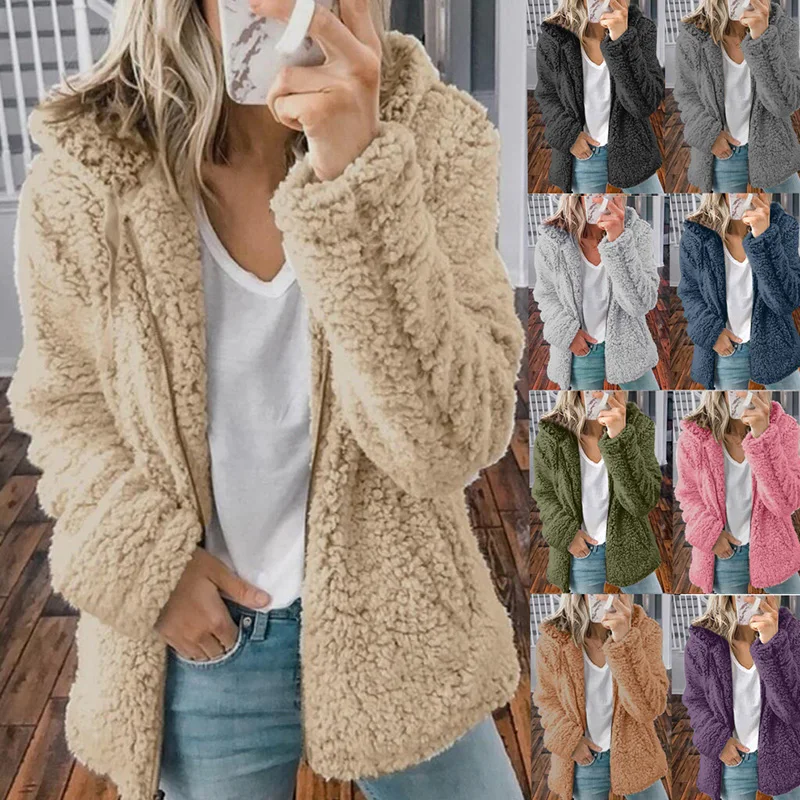 Куртка женская осенне-зимняя из искусственного меха, с капюшоном и длинным рукавом