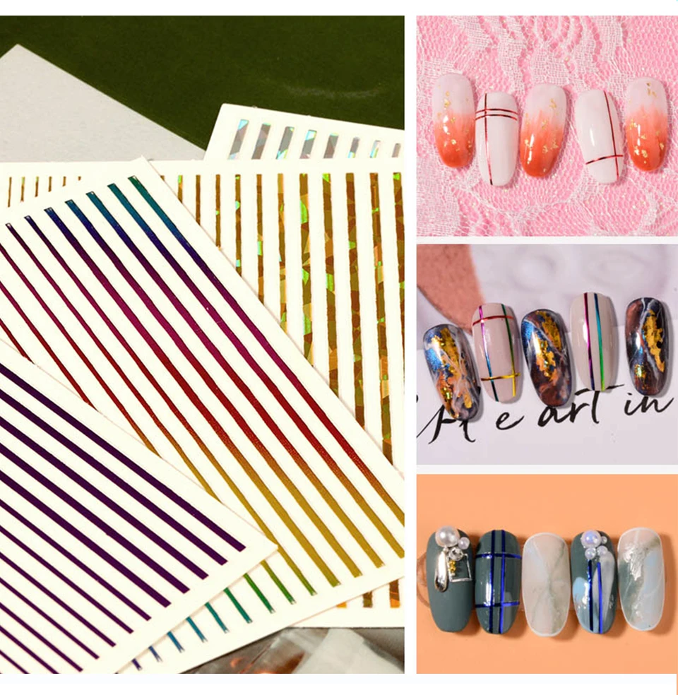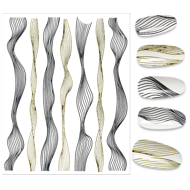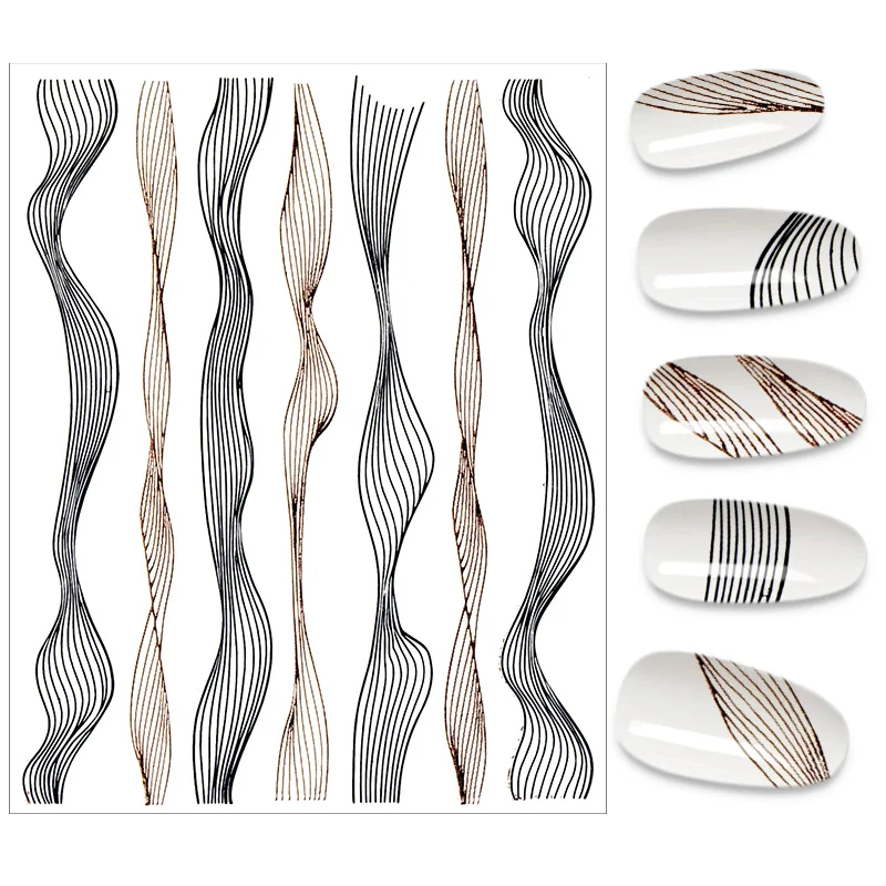 1 шт., черно-белые полосатые наклейки для дизайна ногтей
