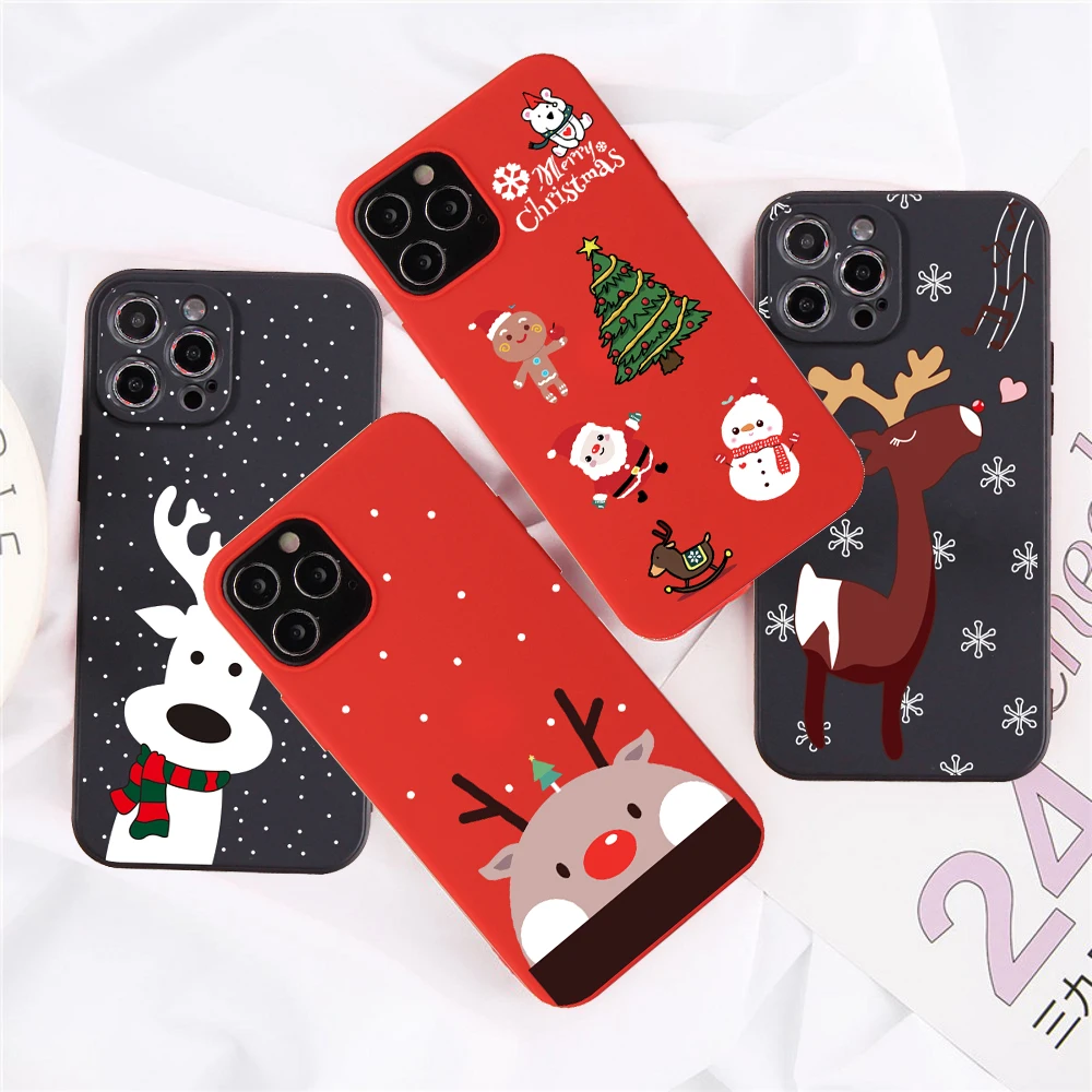 Мультяшный Рождественский матовый чехол для iPhone 12 11 Pro Max 7 ...