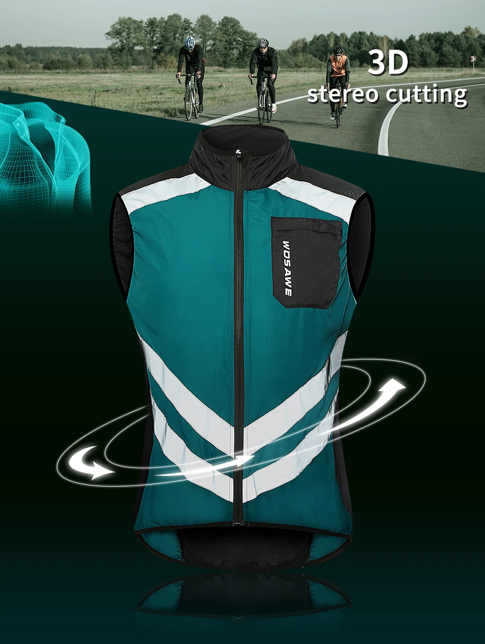 Мужской ультралегкий светоотражающий велосипедный жилет WOSAWE, вет...
