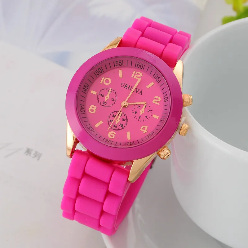 Повседневные часы Geneva унисекс кварцевые часы 14 цветов мужские и женские аналоговые наручные часы Спортивные часы розовое золото Силиконовые часы Прямая поставка
