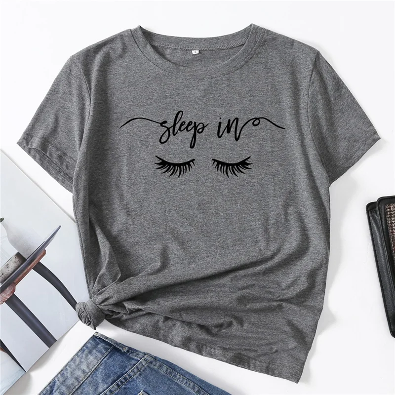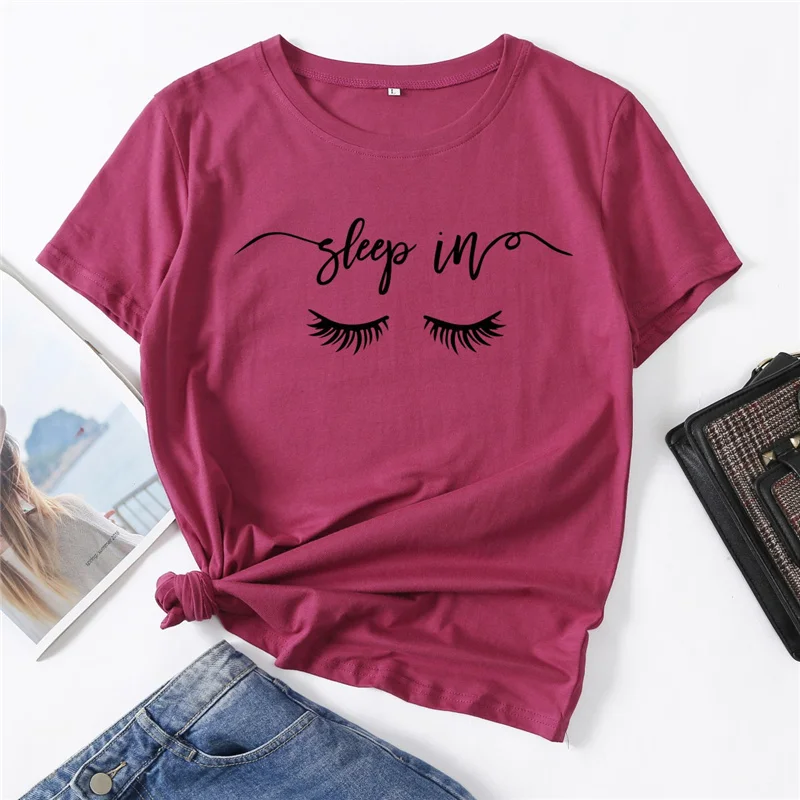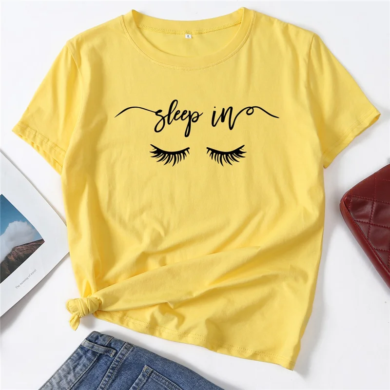 Футболка женская хлопковая с графическим принтом, Базовая рубашка с коротким рукавом, топ для сна в глаза, повседневная одежда, лето 100%