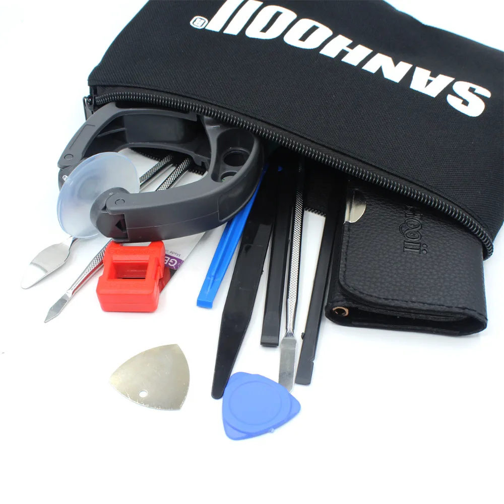 В комплекте: • плоскогубцы с присосками - 1 шт. • запасные присоски - 2 шт. • Sanhooii - 1 шт. • инструмент для вскрытия металлических частей - 3 шт. • монтажная лопатка (выступ) - 1 шт. • инструмент для вскрытия экрана - 1 шт. • инструмент для вскрытия других пластиковых частей - 2 шт. • пластиковая треугольная лопатка - 1 шт. • металлическая треугольная лопатка - 1 шт. • пружинный стальной инструмент для вскрытия - 1 шт. • пинцет ESD хорошего качества - 1 шт. • присоска - 1 шт. • сумка для инструментов Sanhooii - 1 шт. Примечание. 1. Цвет может слегка отличаться из-за настроек отображения цвета на вашем мониторе. 2. Внимательно следуйте инструкциям. 3. Используйте металлические инструменты для твердых областей телефона.