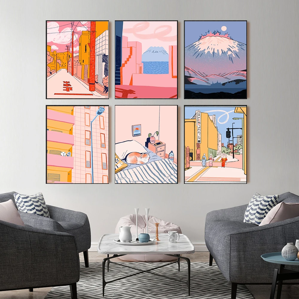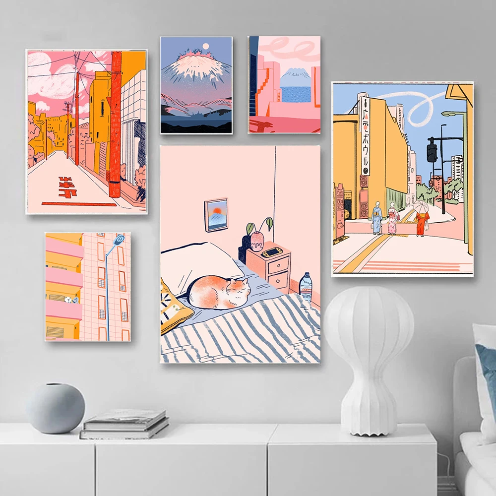 Настенное искусство аниме HD мультфильм вид улица постер японское украшение ночное дерево милая картина спальня модульные постеры холст живопись