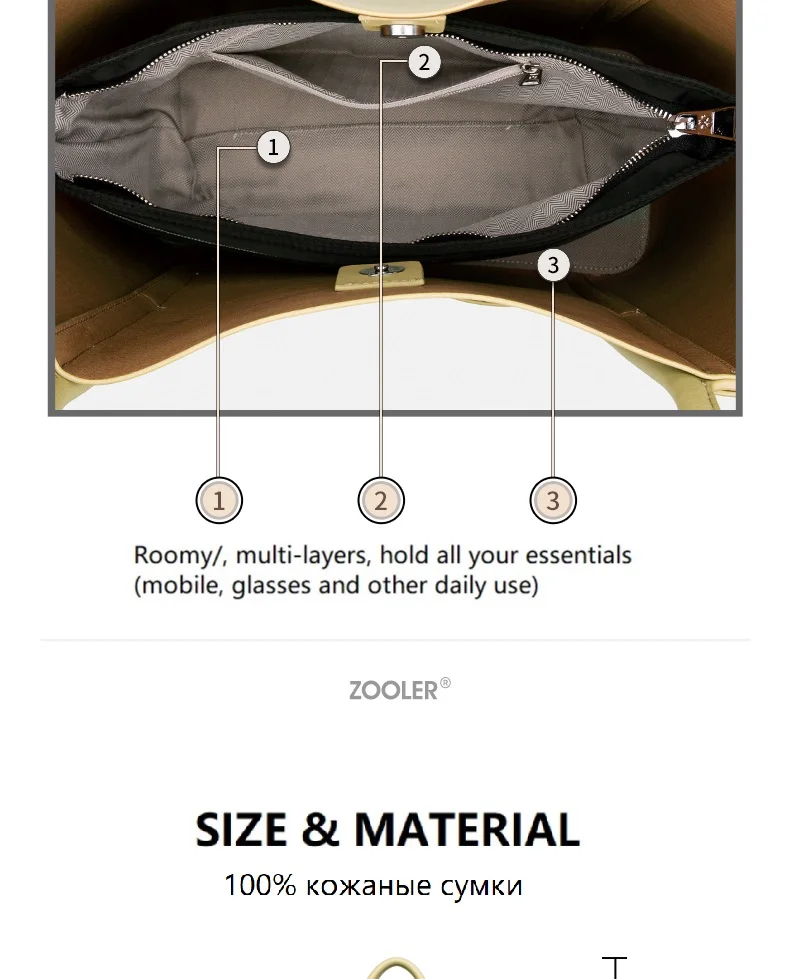 Роскошные сумки из натуральной кожи ZOOLER, вместительные роскошные...