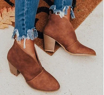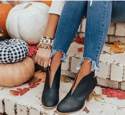 Женские ботинки с V-образным вырезом, ботильоны из искусственной ко...