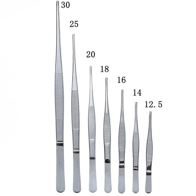 Медицинский пинцет из нержавеющей стали 430304 против йода, Длинные прямые щипцы 12,5 см-30 см, утолщенные медицинские инструменты с прямой головкой и локтем