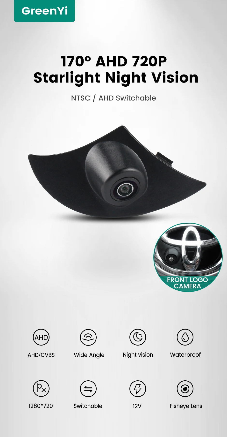 GreenYi 170 AHD 720P Автомобильная камера переднего вида для Toyota RAV4 COROLLA Reiz Vios Highlander Prado2700 40002010 HD камера с логотипом