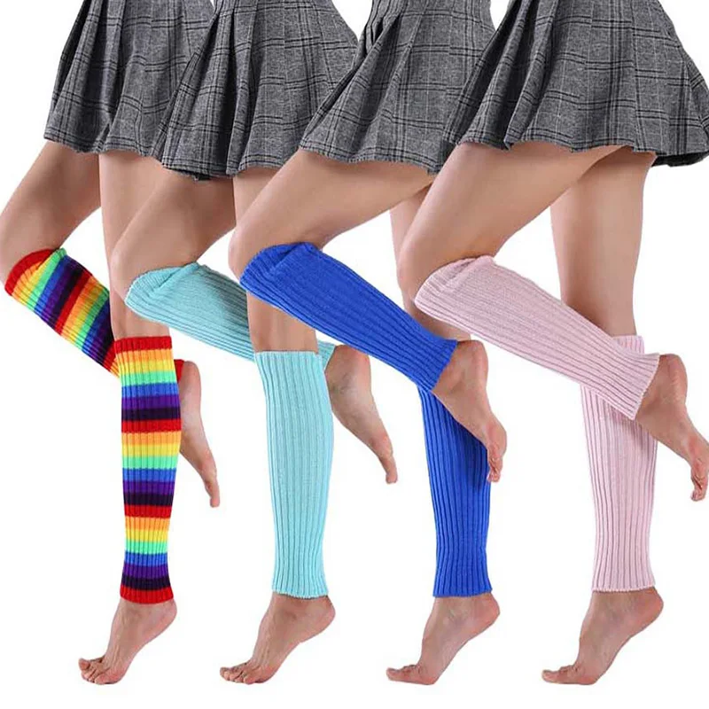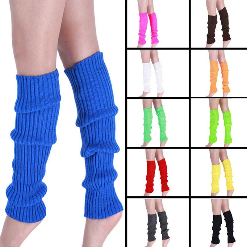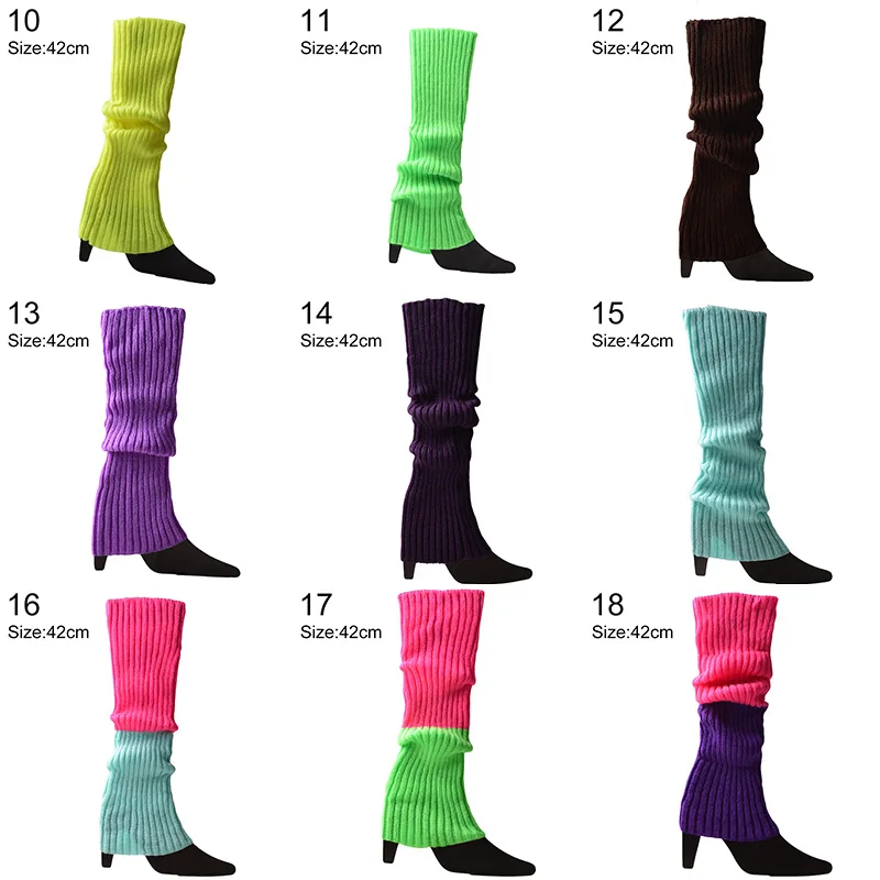 Разноцветные флуоресцентные шерстяные вязаные гетры, Женская грелка...