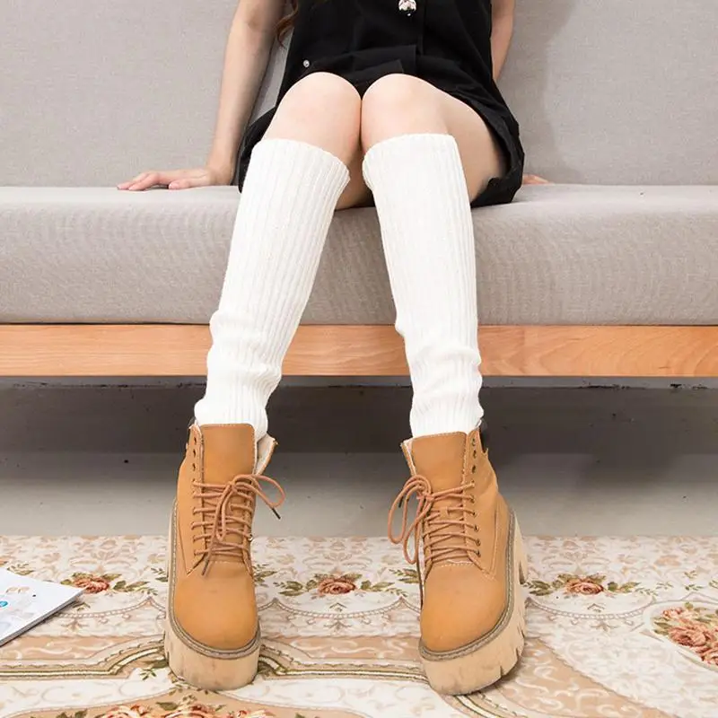 Женская грелка для ног, разноцветная трикотажная греющая Обложка для ног, стильная эластичная длинная трубка для ног