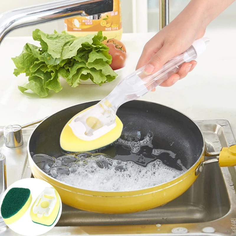 Сменная щетка для чистки с жидкостной ручкой, губка, дозатор, скребок для посуды, домашний инструмент для мытья посуды