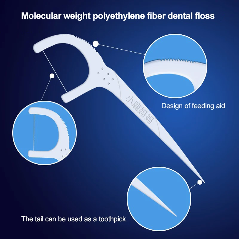 Материал нити прочный, который может легко удалить остатки пищи из зазора зубов, не повреждая десны