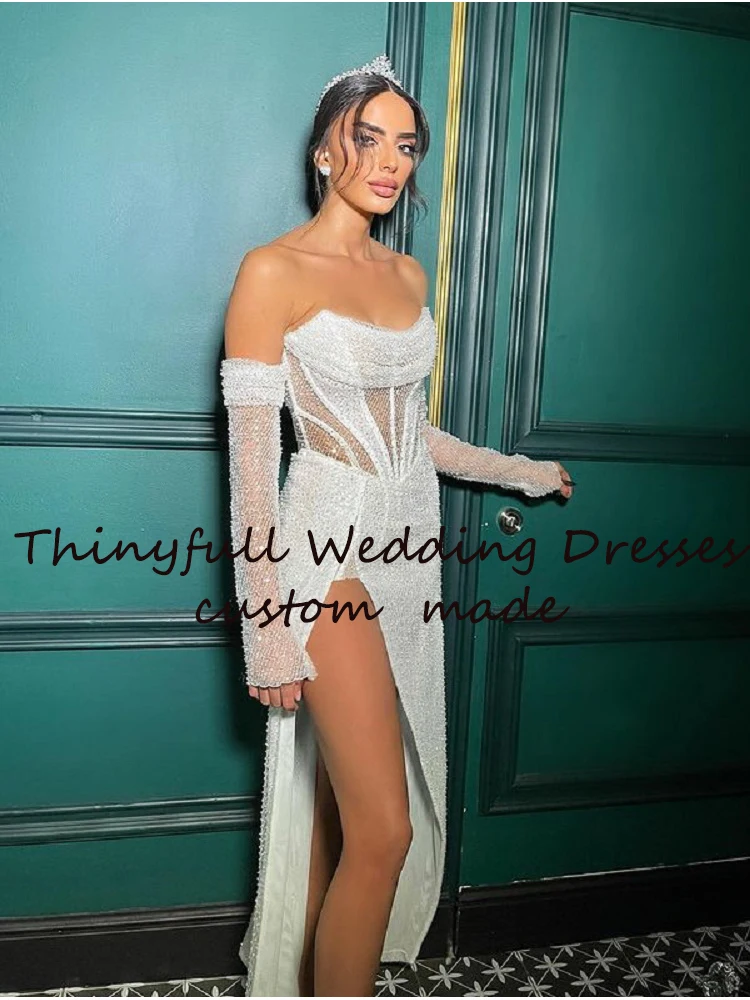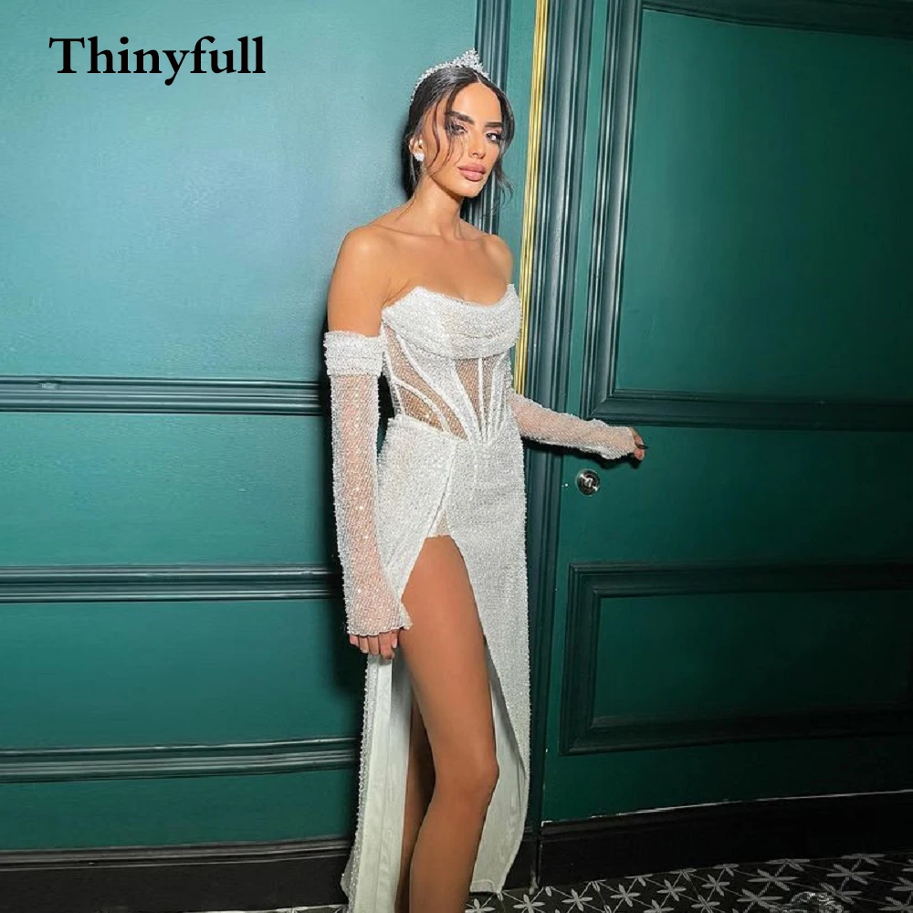 Модное блестящее свадебное платье Sequiens с длинным рукавом без бретелек с Боковым Разрезом трапециевидного силуэта Новые свадебные платья для невесты выпускного вечера платья