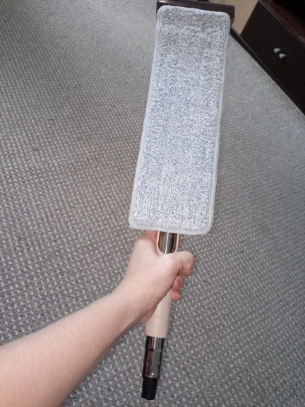 Моя первая швабра такого типа. Я в восторге. Лёгкая, вращается во все стороны и все уголки захватывает. Легко чистится и хорошо воду собирает. Отличная вещь. Три сменных тряпочки, держатся на липучке. Запросто может поработать вместо веника как влажная уборка и потом только замести на совок. Опять же это хороший вариант для ламината. Компактная для хранения. Продавцу спасибо за супер быструю доставку 7 дней в пункт выдачи. Процветания магазину! Рекомендовано! Однозначно поделюсь со знакомыми