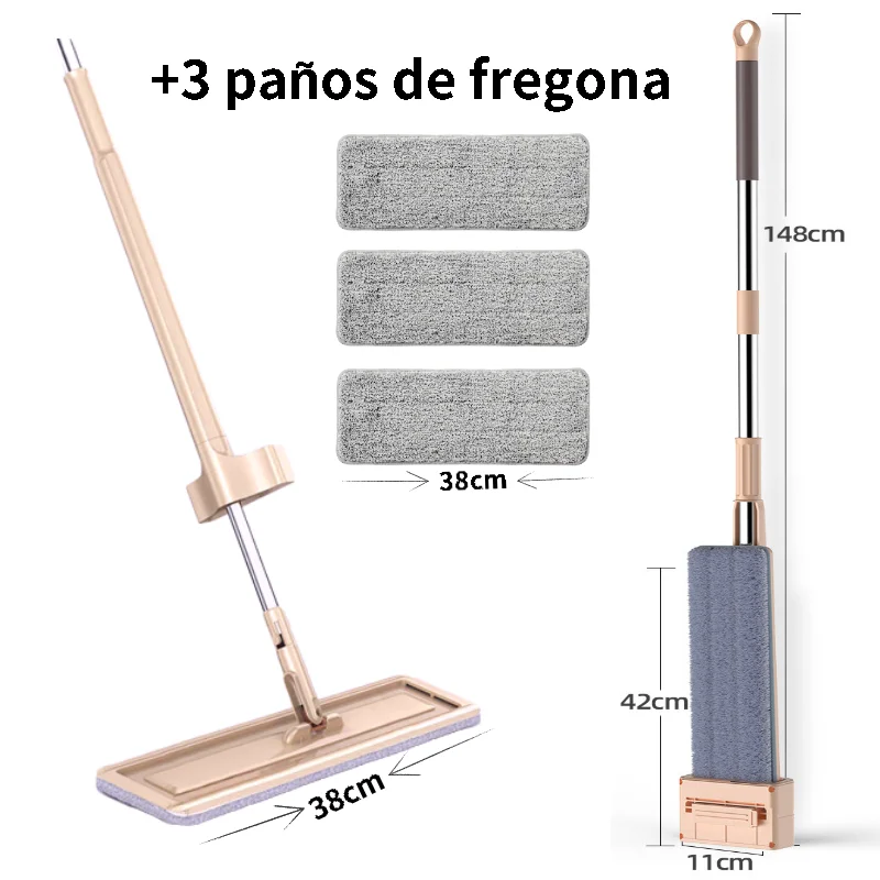 Сожмите плоскую швабру Вращающуюся на 360 градусов ткань из микрофибры для кухни и ванной комнаты для уборки пола быстросохнущая увеличенная насадка для швабры