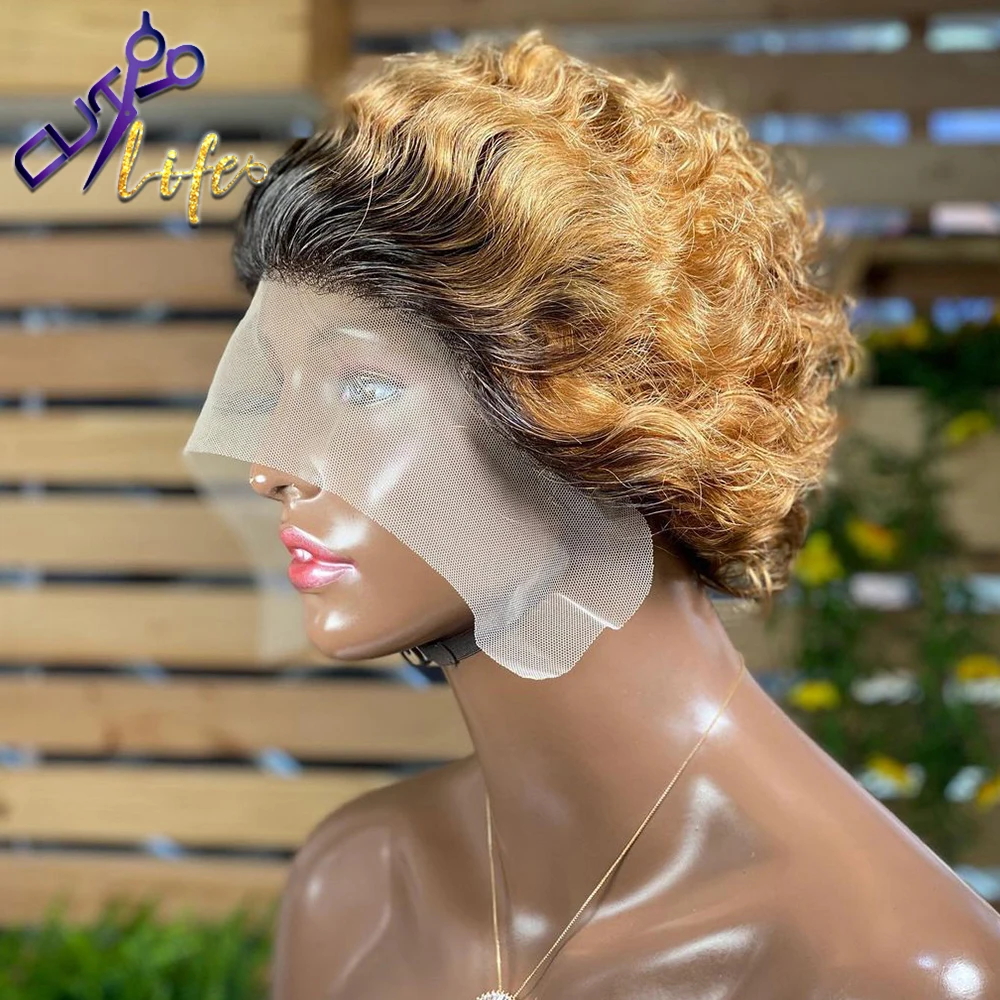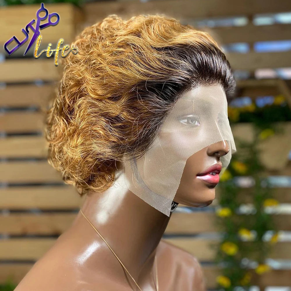 Короткие кудрявые парики боб на сетке медовые светлые Имбирные человеческие волосы на сетке фронтальный парик Фея Омбре волна Реми бразильские волосы для черных женщин